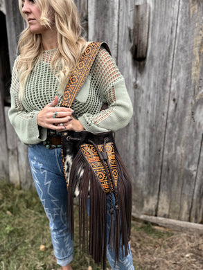 Just like the classic bucket bag, our Brumby Bucket bag can be worn open for easy use or use the leather to cinch it up for security. You can fill this bag to the brim or carry just the basics! A comfortable shoulder strap has a suede lining bottom for a non-slip shoulder design. These are a great medium size! there is one phone pocket on the back and one zippered pocket on it inside!