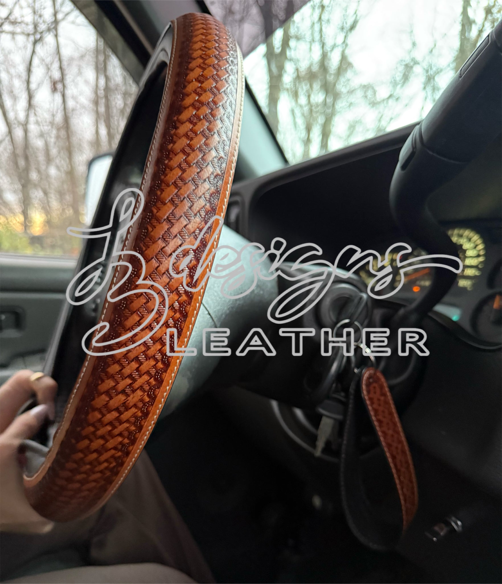 These are not your average steering wheel covers — each one is hand-tooled, hand-painted, and made from genuine leather. 🤎