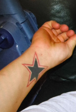 -mini zippered wallet with small tooled star and bottom piece of black boots $145