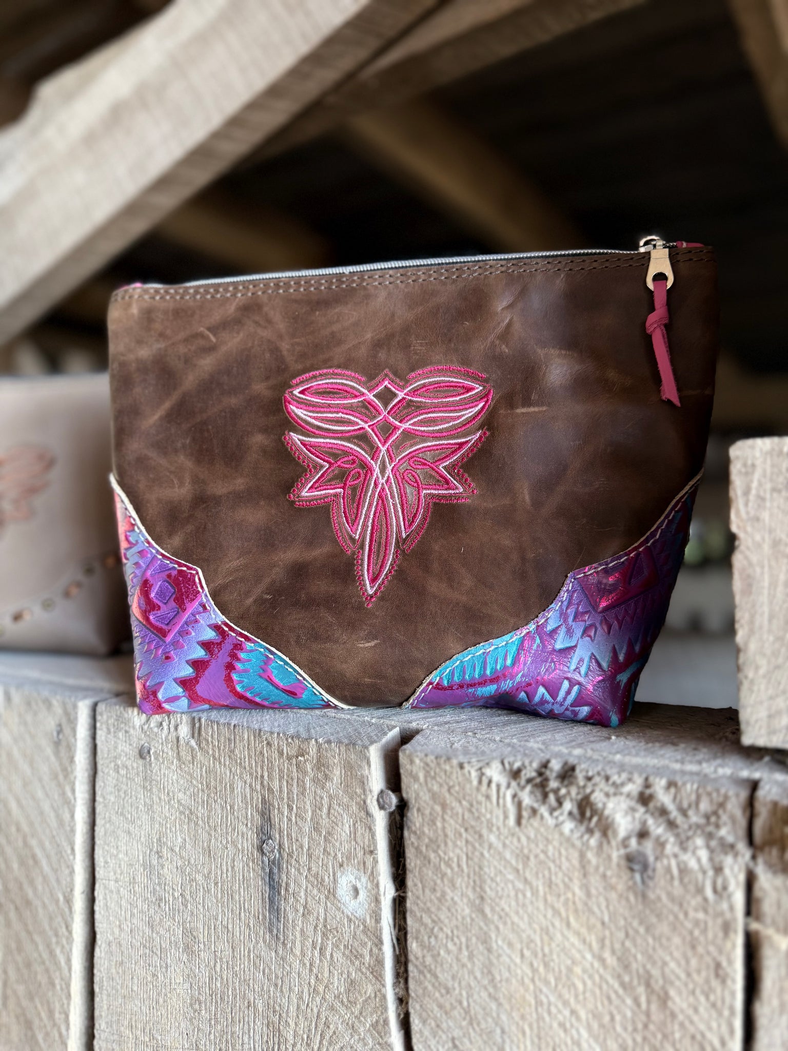 Use it as a makeup pouch, travel bag, or everyday organizer — it’s as functional as it is stylish. Each piece is made with care and attention to detail, making it a beautiful and practical addition to your collection. All leather and vinyl lined.