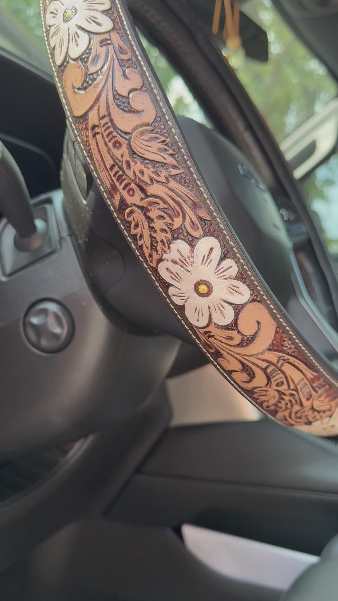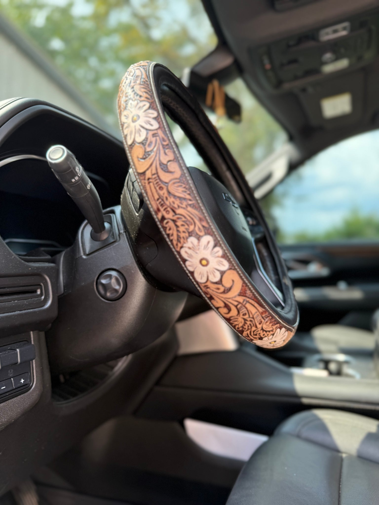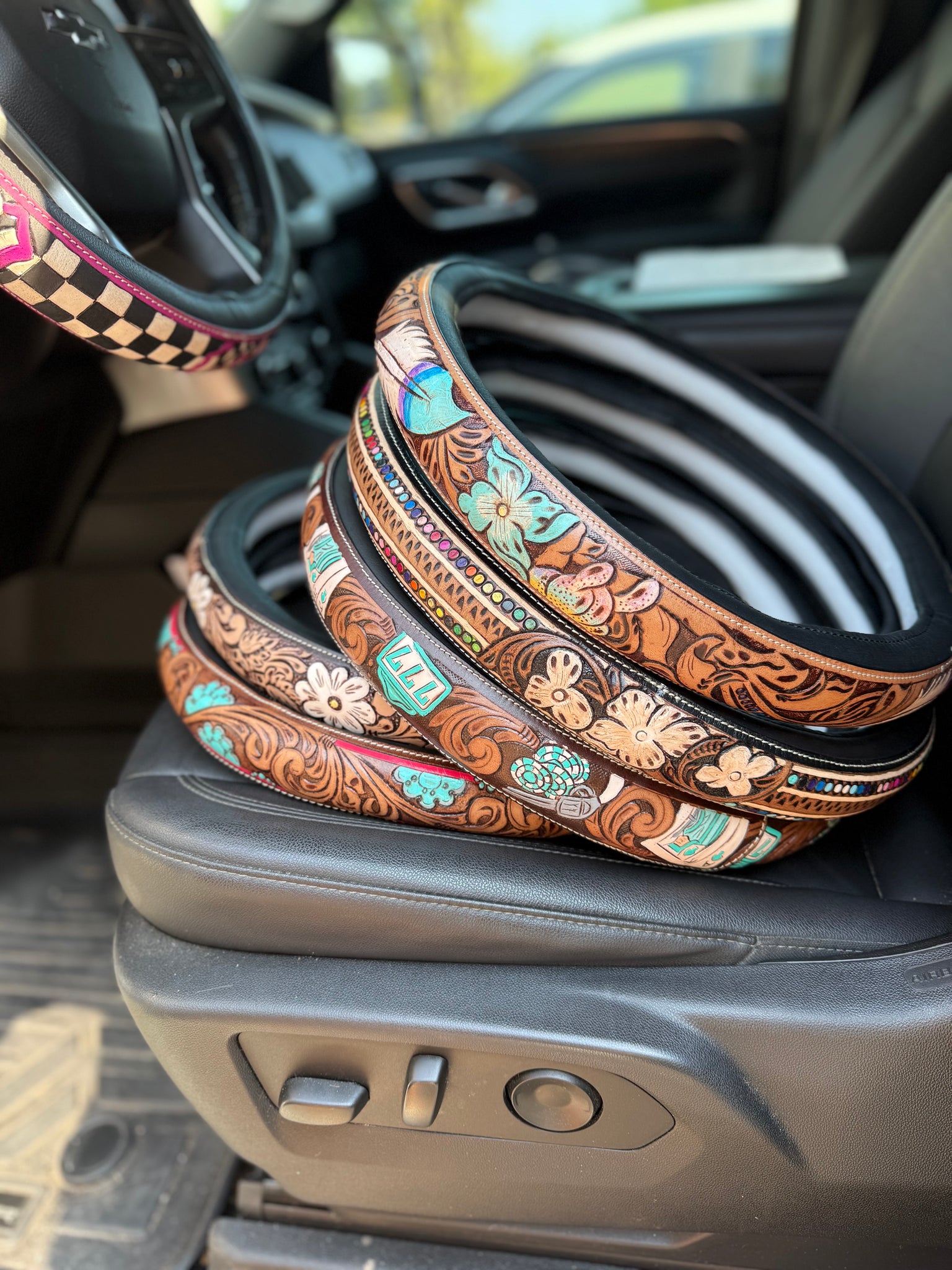 These are not your average steering wheel covers — each one is hand-tooled, hand-painted, and made from genuine leather. 🤎
