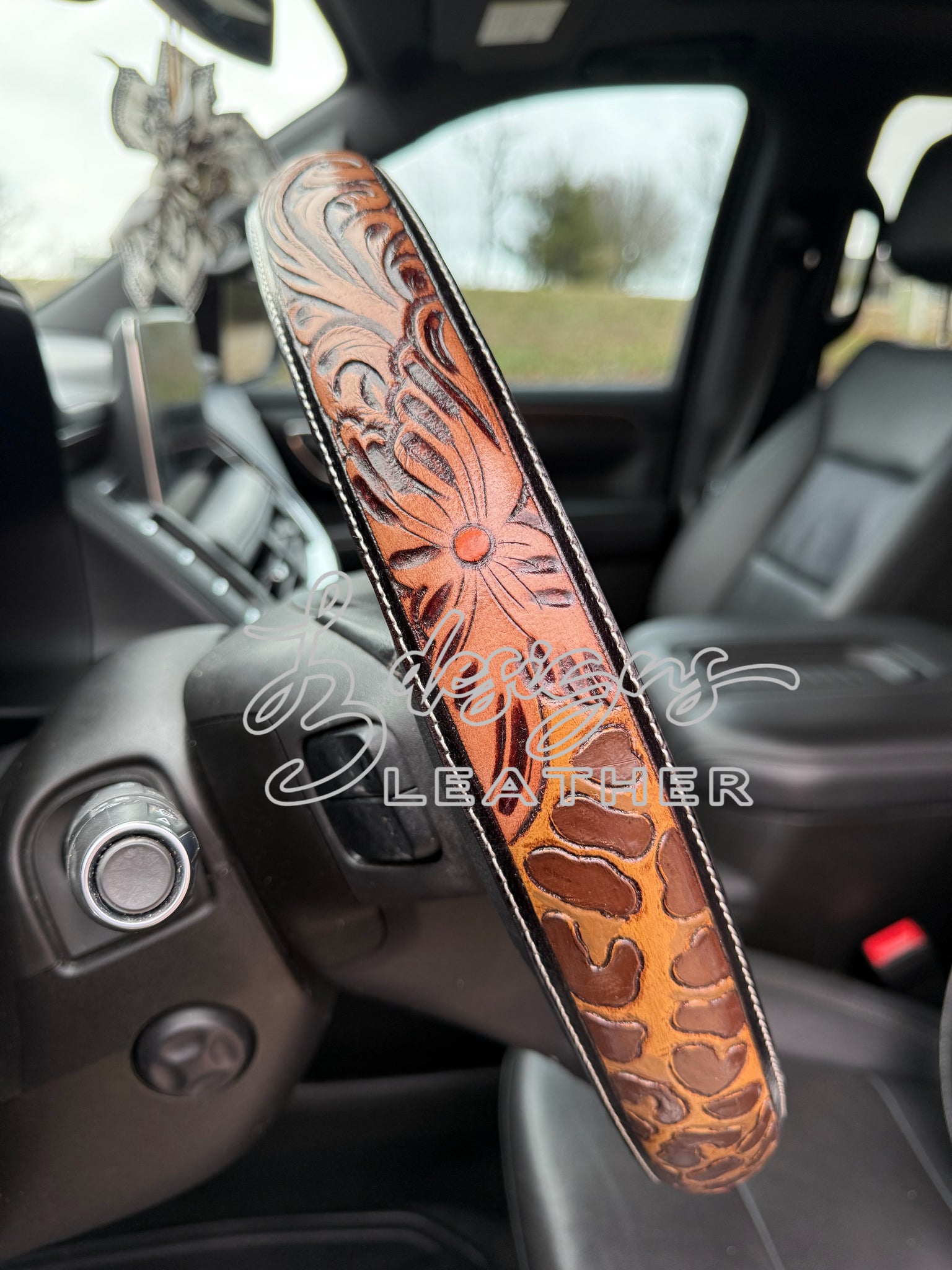 Add a bold, western-inspired touch to your ride with our Tooled Leather Steering Wheel Cover! Hand-tooled and made from genuine leather, this eye-catching cover doesn’t just elevate your car’s interior — it helps protect your steering wheel from wear and tear.
