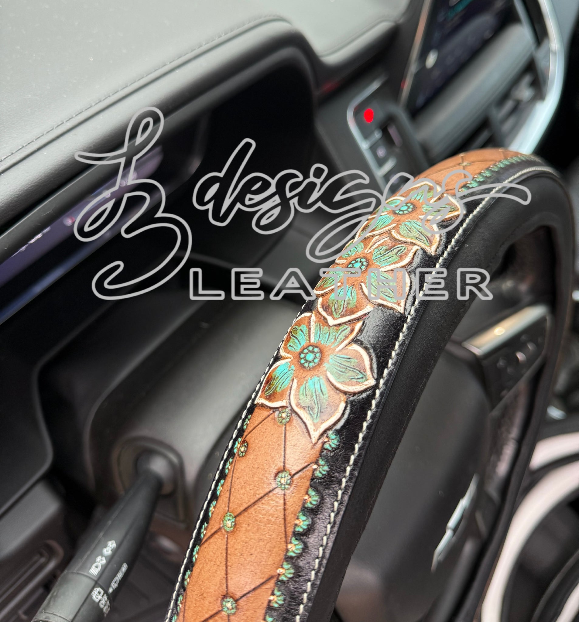 These are not your average steering wheel covers — each one is hand-tooled, hand-painted, and made from genuine leather. 🤎